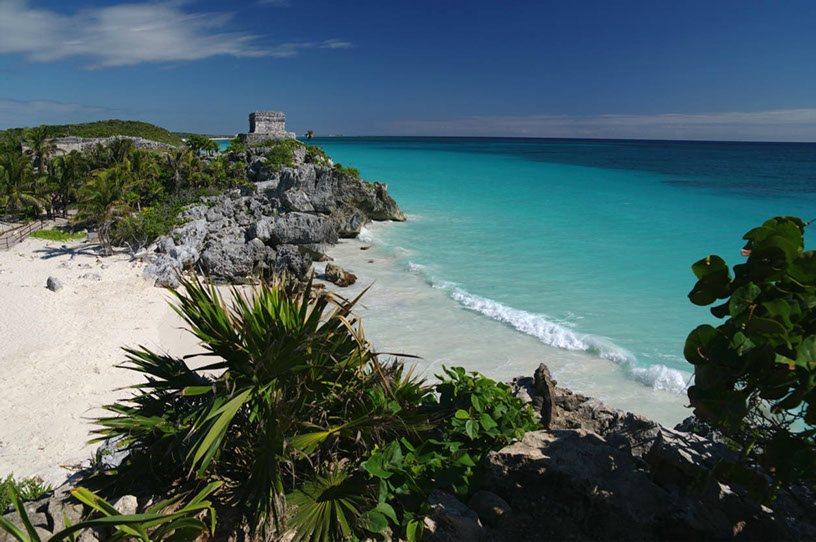 Ruins at Tulum overlooking the white sands